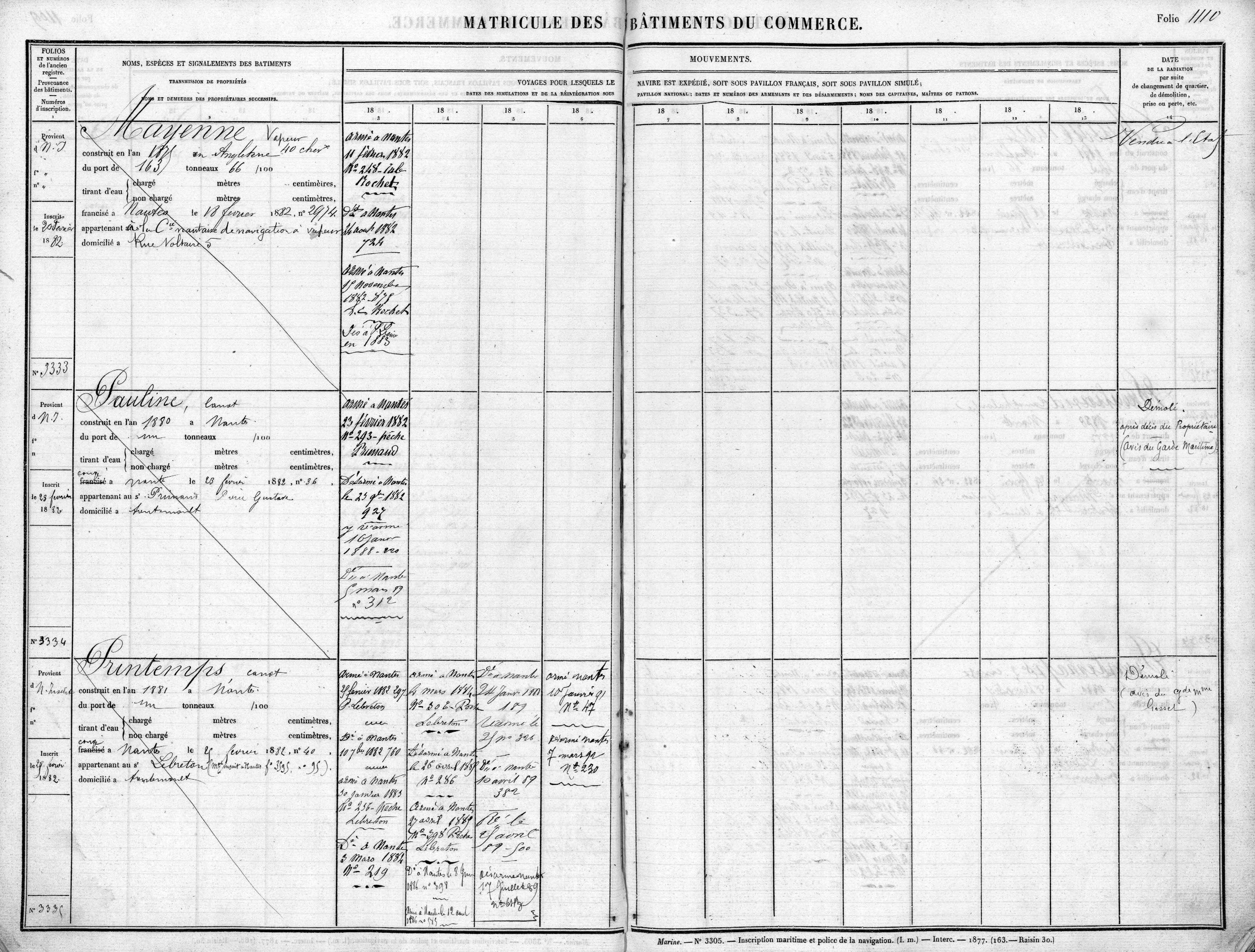 Caractéristiques : 180cv ; 40,90m X 6,60m ; en fer ; 2 mâts.